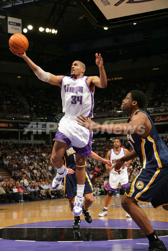 【サクラメント/米国 6日 AFP】06-07NBA、サクラメント・キングス(Sacramento Kings)vsインディアナ・ペイサーズ(Indiana Pacers)。キングスのコーリス・ウィリアムソン(Corliss Williamson)は、ベンチから21分間の出場で13得点を記録。試合は、キングスが102-98で勝利を収めて連勝を4に伸ばした。(c)AFP/Getty Images/NBAE Rocky Widner