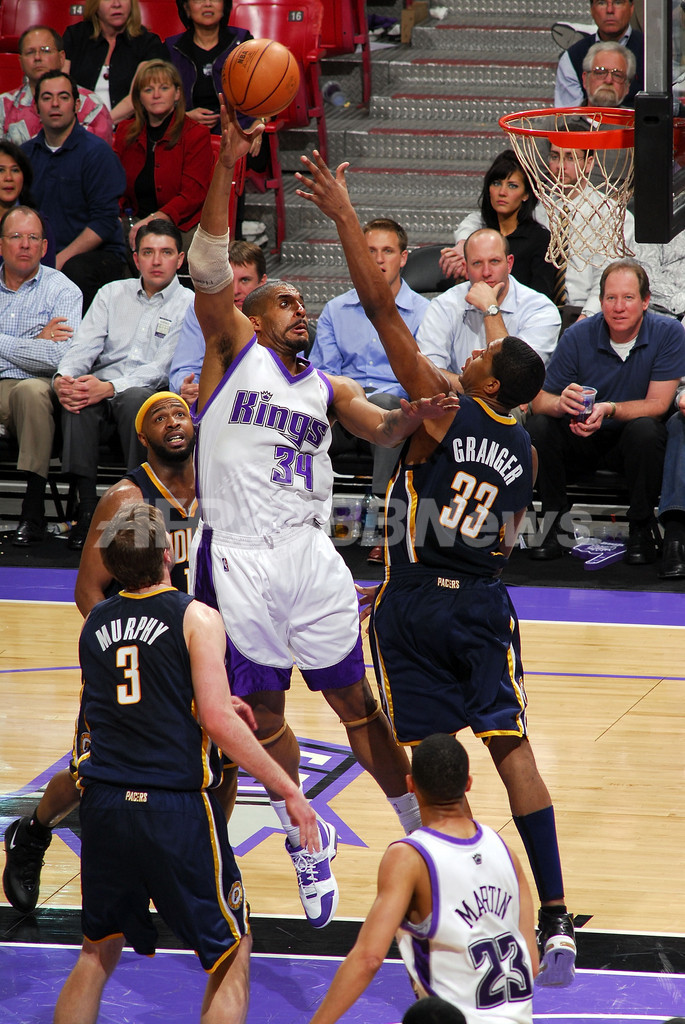 【サクラメント/米国 6日 AFP】06-07NBA、サクラメント・キングス(Sacramento Kings)vsインディアナ・ペイサーズ(Indiana Pacers)。キングスのコーリス・ウィリアムソン(Corliss Williamson)は、ベンチから21分間の出場で13得点を記録。試合は、キングスが102-98で勝利を収めて連勝を4に伸ばした。(c)AFP/Getty Images/NBAE Rocky Widner