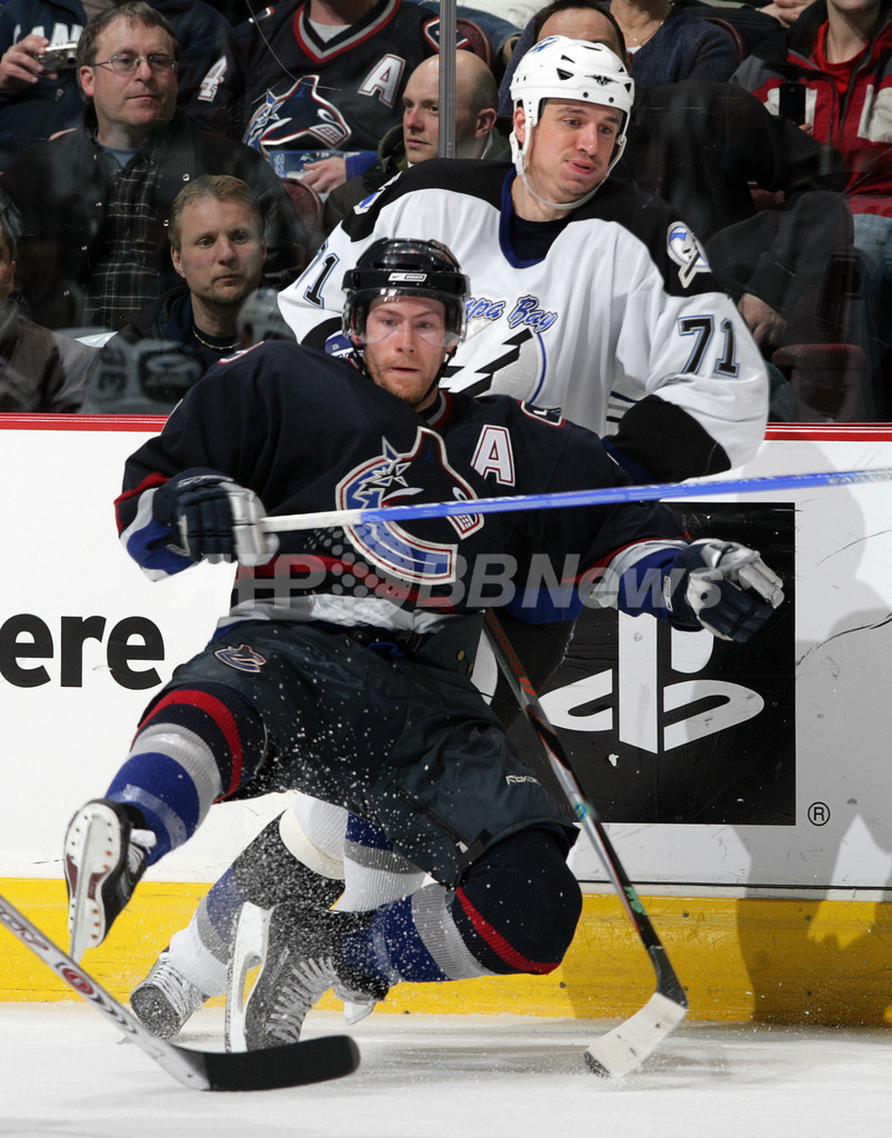 【バンクーバー/カナダ 6日 AFP】06-07NHL、バンクーバー・カナックス(Vancouver Canucks)vsタンパベイ・ライトニング(Tampa Bay Lightning)。試合は5-1でカナックスが快勝し、3連勝で今季39勝目を挙げた。写真は、試合に勝利しチームメイトのAlexandre Burrows、トレバー・リンデン(Trevor Linden、右)と喜び合うカナックスのゴーリー、ロベルト・ルオンゴ(Roberto Luongo、中)。(c)AFP/Getty Images Jeff Vinnick