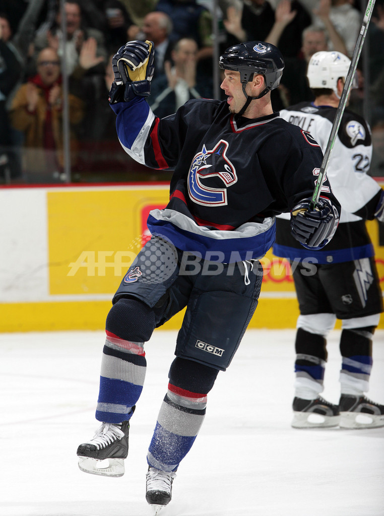 【バンクーバー/カナダ 6日 AFP】06-07NHL、バンクーバー・カナックス(Vancouver Canucks)vsタンパベイ・ライトニング(Tampa Bay Lightning)。試合は5-1でカナックスが快勝し、3連勝で今季39勝目を挙げた。写真は、試合に勝利しチームメイトのAlexandre Burrows、トレバー・リンデン(Trevor Linden、右)と喜び合うカナックスのゴーリー、ロベルト・ルオンゴ(Roberto Luongo、中)。(c)AFP/Getty Images Jeff Vinnick