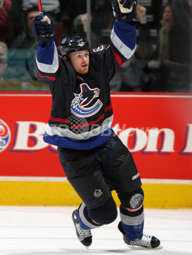 【バンクーバー/カナダ 6日 AFP】06-07NHL、バンクーバー・カナックス(Vancouver Canucks)vsタンパベイ・ライトニング(Tampa Bay Lightning)。試合は5-1でカナックスが快勝し、3連勝で今季39勝目を挙げた。写真は、試合に勝利しチームメイトのAlexandre Burrows、トレバー・リンデン(Trevor Linden、右)と喜び合うカナックスのゴーリー、ロベルト・ルオンゴ(Roberto Luongo、中)。(c)AFP/Getty Images Jeff Vinnick