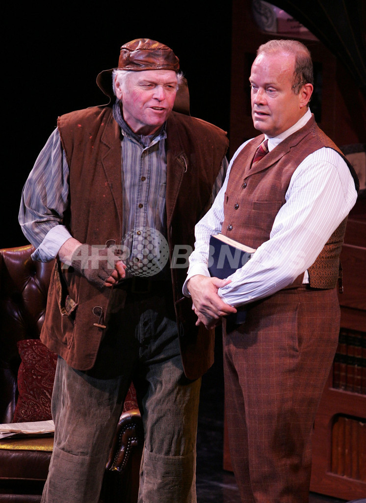 【ニューヨーク/米国 8日 AFP】ミュージカル「マイ・フェア・レディ(My Fair Lady)」が7日から10日まで、リンカーン・センター(Lincoln Center)内のエイブリー・フィッシャー・ホール(Avery Fisher Hall)で開催される。7日には、最終の舞台稽古が行なわれた。写真は同日、ヒギンズ博士(Henry Higgins)役を演じる俳優のケルシー・グラマー(Kelsey Grammer、左)とアルフレッド・P・ドゥーリトル(Alfred P. Doolittle)役を演じる俳優のブライアン・デネヒー(Brian Dennehy)。(c)AFP/Getty Images Peter Kramer