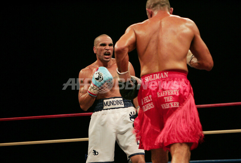 【シドニー/オーストラリア 7日 AFP】ボクシング、WBAスーパーミドル級暫定王座決定戦、元WBA同級王者/同級1位アンソニー・ムンディン(Anthony Mundine、オーストラリア)vs同級3位サム・ソリマン(Sam Soliman、オーストラリア)。試合はソリマンを9ラウンドのKOで降したムンディンが勝利を収め、WBAスーパーミドル級のタイトルを獲得した。(c)AFP/Anoek DE GROOT