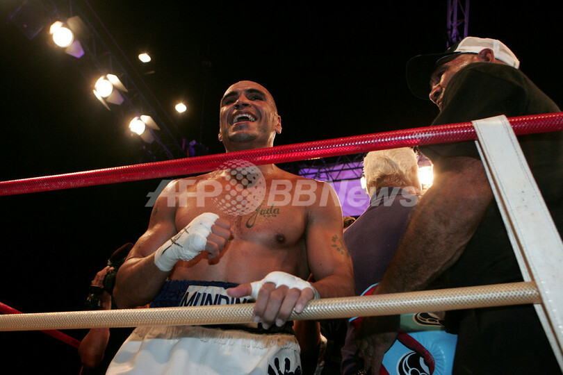 【シドニー/オーストラリア 7日 AFP】ボクシング、WBAスーパーミドル級暫定王座決定戦、元WBA同級王者/同級1位アンソニー・ムンディン(Anthony Mundine、オーストラリア)vs同級3位サム・ソリマン(Sam Soliman、オーストラリア)。試合はソリマンを9ラウンドのKOで降したムンディンが勝利を収め、WBAスーパーミドル級のタイトルを獲得した。(c)AFP/Anoek DE GROOT
