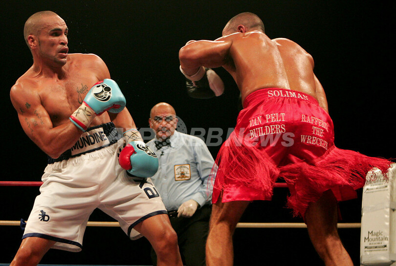 【シドニー/オーストラリア 7日 AFP】ボクシング、WBAスーパーミドル級暫定王座決定戦、元WBA同級王者/同級1位アンソニー・ムンディン(Anthony Mundine、オーストラリア)vs同級3位サム・ソリマン(Sam Soliman、オーストラリア)。試合はソリマンを9ラウンドのKOで降したムンディンが勝利を収め、WBAスーパーミドル級のタイトルを獲得した。(c)AFP/Anoek DE GROOT