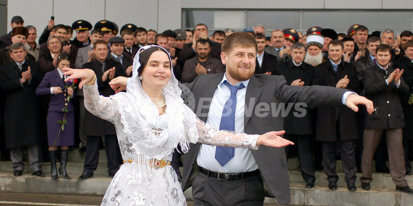 写真は同日、空港再開を祝うラムザン・カディロフ(Ramzan Kadyrov)大統領(右)ら。(c)AFP/RUSLAN ALKHANOV