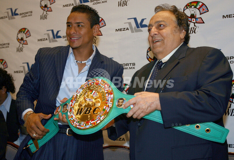 <ボクシング>マルケス スレイマン会長からチャンピオンベルトを手渡される - メキシコ