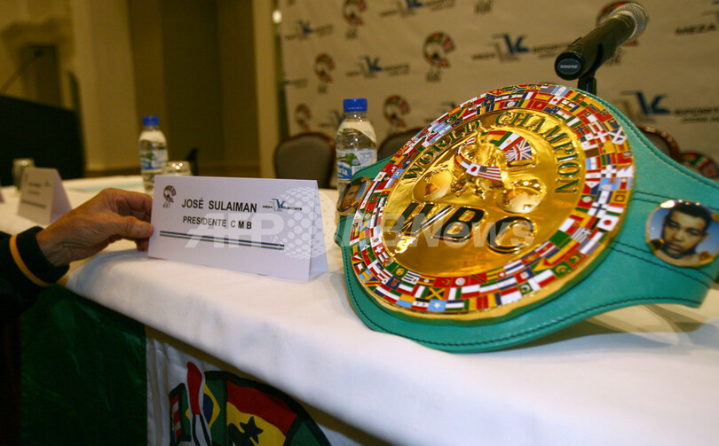 <ボクシング>マルケス スレイマン会長からチャンピオンベルトを手渡される - メキシコ