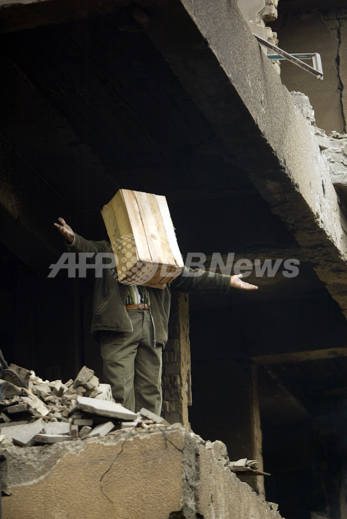 【バグダッド/イラク 9日 AFP】血痕が付着したがれきのそばで、抵抗の詩を詠む詩人たち。古代から文学活動の中心地とされてきたバグダッド中心部の書店街ムタナビ(Mutanabi)通りが自動車爆弾で吹き飛ばされた数日後、詩人やアーティストが嘆きのパフォーマンスをするために現場に戻ってきた。