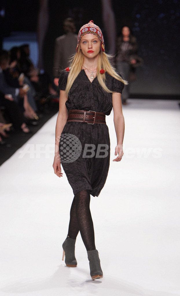 【テキサス/米国 9日 AFP】セフォラ(Sephora)主催の「ファッション・ウィーク・ライブ(Fashion Week Live)」が8日、テキサス州ヒューストンで開催された。同イベントでは、ザック・ポーゼン(Zac Posen)、カルバン・クライン(Calvin Klein)、マイケル・コース(Michael Kors)などの有名ブランドが07/08年秋冬新作コレクションを披露した。写真は、ショーに登場したモデルのサーシャ・ピヴォヴァロヴァ(Sasha Pivovarova)。(c)AFP/Getty Images Mark Mainz