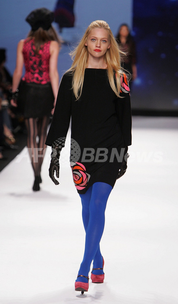 【テキサス/米国 9日 AFP】セフォラ(Sephora)主催の「ファッション・ウィーク・ライブ(Fashion Week Live)」が8日、テキサス州ヒューストンで開催された。同イベントでは、ザック・ポーゼン(Zac Posen)、カルバン・クライン(Calvin Klein)、マイケル・コース(Michael Kors)などの有名ブランドが07/08年秋冬新作コレクションを披露した。写真は、ショーに登場したモデルのサーシャ・ピヴォヴァロヴァ(Sasha Pivovarova)。(c)AFP/Getty Images Mark Mainz