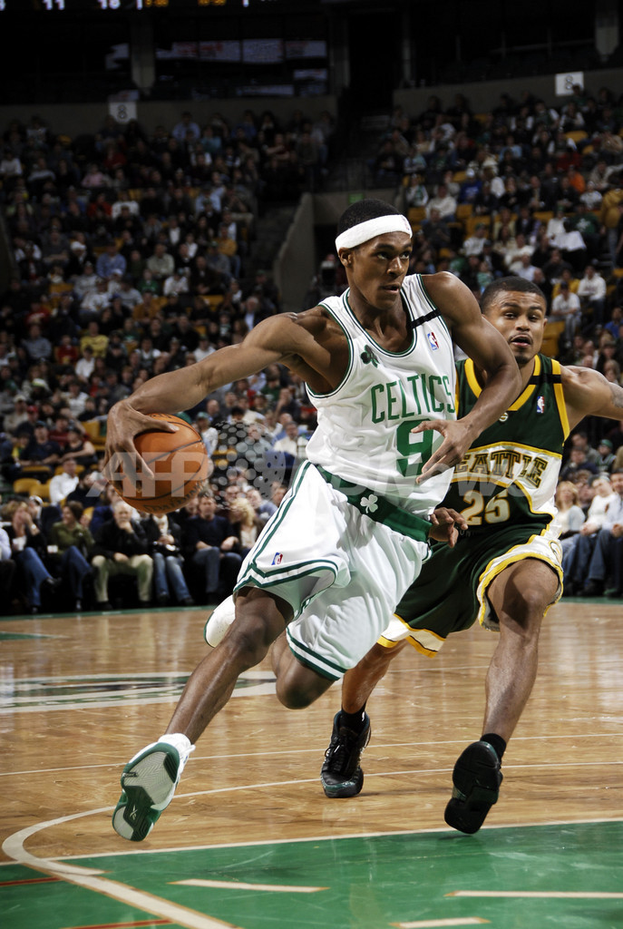 【ボストン/米国 9日 AFP】06-07NBA、ボストン・セルティックス(Boston Celtics)vsシアトル・スーパーソニックス(Seattle SuperSonics)。セルティックスのアル・ジェファーソン(Al Jefferson)は、ゲームハイの31得点16リバウンドで4試合連続となるダブルダブルを記録し、チームの勝利に貢献した。試合はセルティックスがスーパーソニックスに最大15点のリードを奪われながらも118-103で勝利を収め、今季18勝目を挙げた。写真は、スーパーソニックスのラシャード・ルイス(Rashard Lewis)を振り切りダンクを決めるジェファーソン。(c)AFP/Getty Images/NBAE Brian Babineau