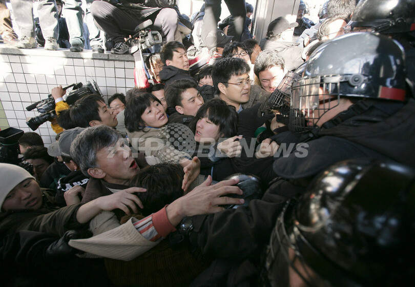 ニュース 政治・経済 韓米自由貿易協定への反対集会に数千人集まる - 韓国 2007年3月10日 21:08 発信地:韓国 [ 韓国・北朝鮮 韓国 ] このニュースをシェア ‹ › ❮ 2/2 ❯ 写真は同日、機動隊員らともみ合いになる参加者ら。(c)AFP/CHOI WON-SUK 画像作成中 ! 【ソウル/韓国 10日 AFP】ソウル(Seoul)の中心街で10日、米韓の自由貿易協定(FTA)締結への反対集会が開かれ、数千人の農業従事者、労働者、活動家らが参加した。参加者らは政府が米国の圧力で市場開放を軽率に押し進めていると訴えた。写真は同日、スローガンを叫ぶ参加者たち。(c)AFP/KIM JAE-HWAN 政治・経済 一覧へ> メディア・報道関係・法人の方向け 写真・動画 購入のお問合せ>
