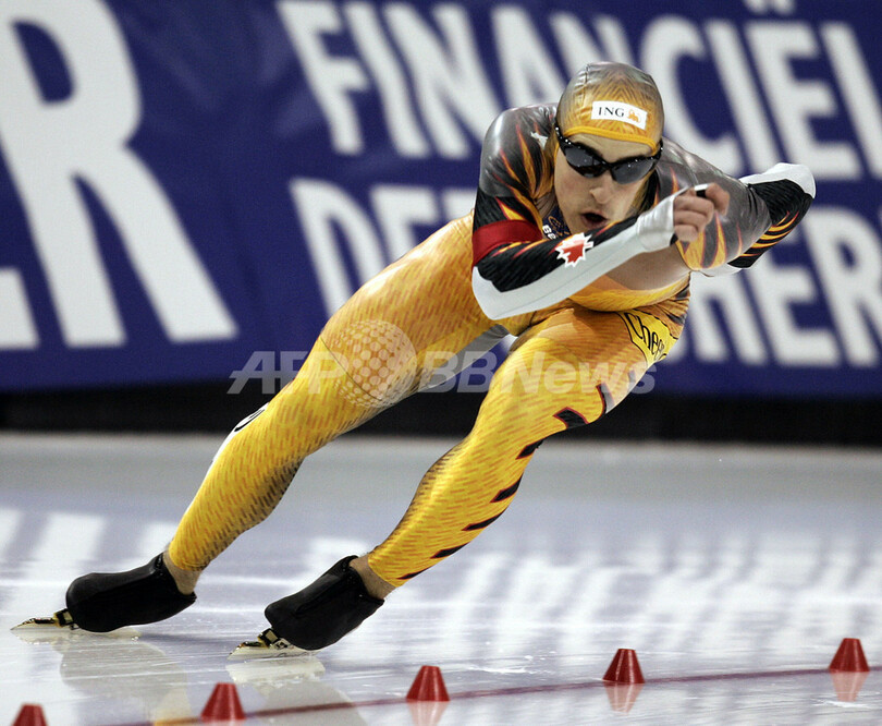 【ソルトレイクシティー/米国 10日 AFP】ISU世界スピードスケート距離別選手権(2007 ISU World Single Distances Speed Skating Championships)、男子1000メートル。米国のシャニー・デービス(Shani Davis)は1分07秒28をマークし優勝を飾った。(c)AFP/Timothy A. CLARY