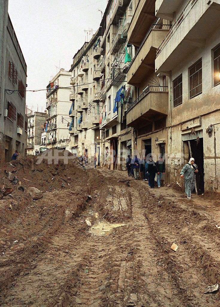 写真は、2001年に発生した鉄砲水により被害を受けたアルジェ市内。この災害では、約700の人命が失われている(2001年11月29日撮影)。(c)AFP