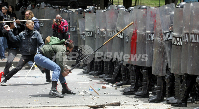 ブッシュ大統領が大統領専用機「エアフォースワン(Air Force One)」でボゴタ(Bogota)に到着した頃、市内では約100人の市民が警察に石などを投げつける暴動が起き、警察は催涙ガスで対応した。ブッシュ大統領とアルバロ・ウリベ(Alvaro Uribe)大統領の会談場所である大統領府までの道のりは、厳重な警備が敷かれた。