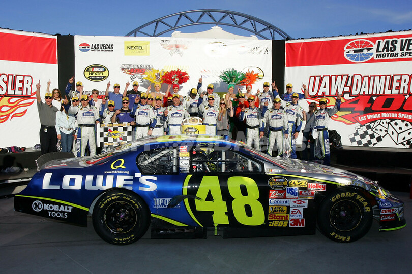 【ラスベガス/米国 11日 AFP】NASCAR・ネクステルカップ・シリーズ(2007 NASCAR Nextel Cup Series)・第3戦・UAWダイムラークライスラー400(UAW-DaimlerChrysler 400)、決勝。23番グリッドからスタートしたヘンドリック・モータースポーツ/シボレー(Hendrick Motorsports Chevrolet)のジミー・ジョンソン(Jimmie Johnson)は、シーズン初優勝を飾り190ポイント(267周)を獲得した。(c)AFP/Getty Images Rusty Jarrett