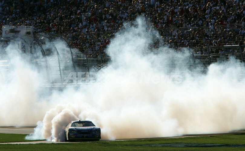 【ラスベガス/米国 11日 AFP】NASCAR・ネクステルカップ・シリーズ(2007 NASCAR Nextel Cup Series)・第3戦・UAWダイムラークライスラー400(UAW-DaimlerChrysler 400)、決勝。23番グリッドからスタートしたヘンドリック・モータースポーツ/シボレー(Hendrick Motorsports Chevrolet)のジミー・ジョンソン(Jimmie Johnson)は、シーズン初優勝を飾り190ポイント(267周)を獲得した。(c)AFP/Getty Images Rusty Jarrett