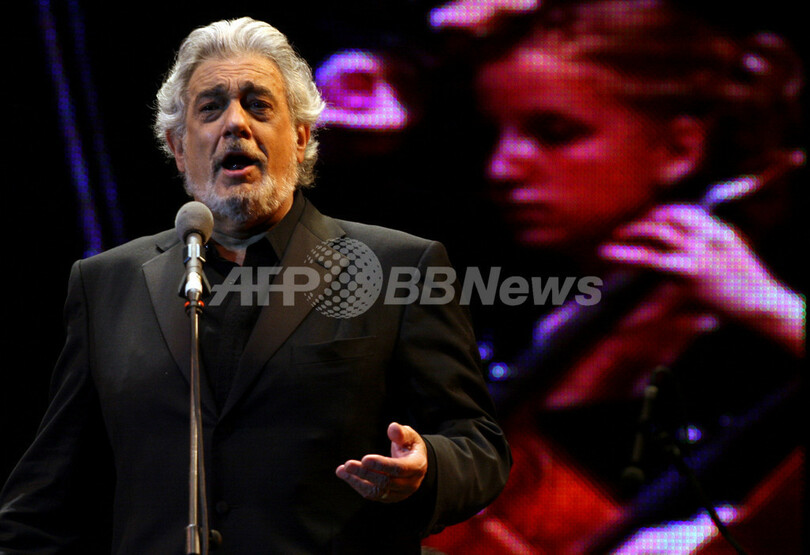 【サンティアゴ/チリ 12日 AFP】Town Council Theatreの新シーズン開幕を記念して11日、Plaza de Armasを会場に、スペイン人テノール歌手のプラシド・ドミンゴ(Placido Domingo)とチリ人ソプラノ歌手ヴェロニカ・ヴィッラロエル(Veronica Villarroel)がオープニング・コンサートを開催した。写真は壇上でパフォーマンスを披露するドミンゴ(左)とヴィッラロエル。(c)AFP/DAVID LILLO