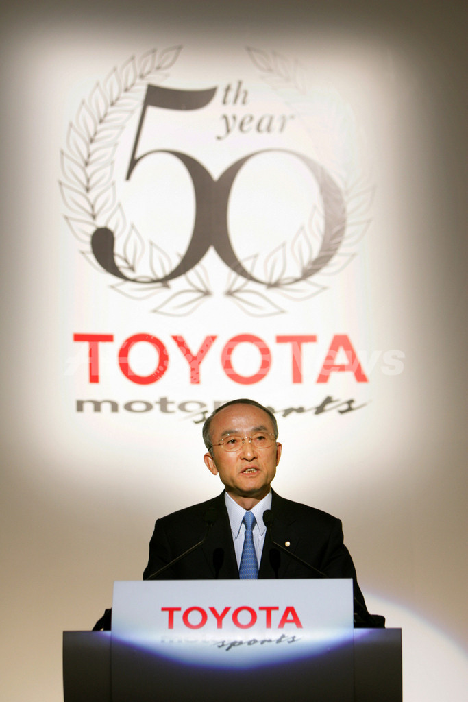 【東京/日本 12日 AFP】F1・今季開幕戦・オーストラリアGP(Australian Grand Prix 2007)の開幕を16日に控え、今年でモータースポーツ活動50周年を迎えるトヨタ(Toyota)が都内で2007年のモータースポーツ活動計画を発表し、トヨタ自動車(Toyota Motor Corporation)の渡辺捷昭(Katsuake Watanabe)社長が記者会見に臨んだ。(c)AFP/KAZUHIRO NOGI