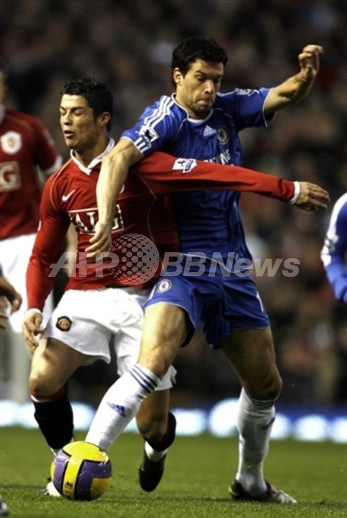 写真は、マンチェスター・ユナイテッドのクリスティアーノ・ロナウド(Cristiano Ronaldo)のボールを奪うチェルシーのミヒャエル・バラック(Michael Ballack)(2006年11月26日撮影)。(c)AFP/ANDREW YATES