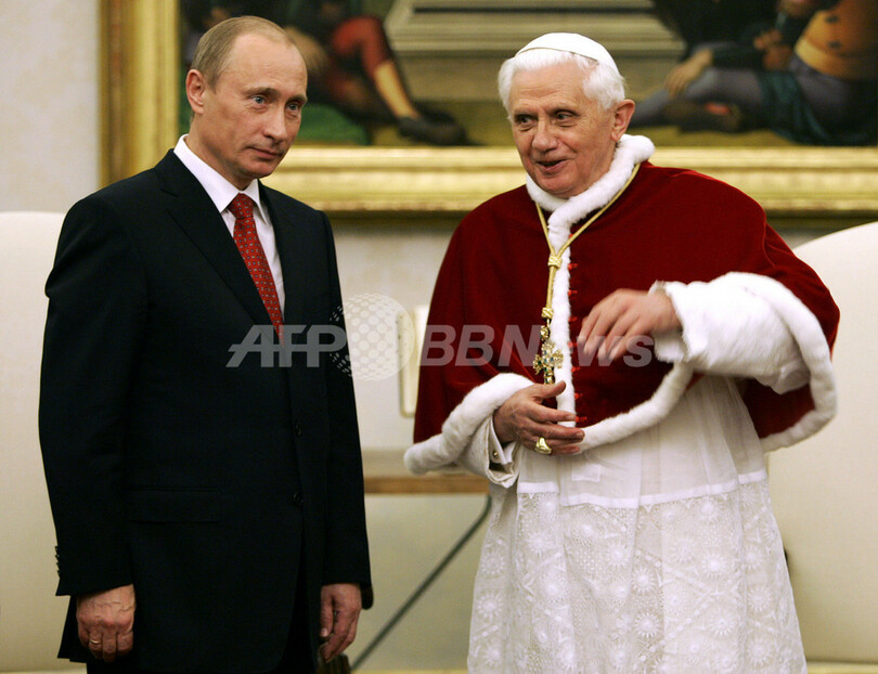 【バチカン 14日 AFP】ローマ・カトリック教会(Roman Catholic Church)とロシア正教会(Russian Orthodox Church)の関係に改善の兆しが見られる中、ウラジーミル・プーチン(Vladimir Putin)露大統領とローマ法王ベネディクト16世(Benedict XVI)がバチカン(Vatican)で13日、初の会談が行われた。