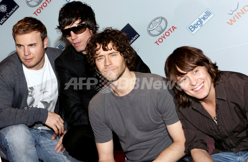 写真は、第57回サンレモ音楽祭(Il Festival di Sanremo)に参加したテイク・ザット(Take That)メンバー(左から)ゲイリー・バーロウ(Gary Barlow)、ジェイソン・オレンジ(Jason Orange)、ハワード・ドナルド(Howard Donald)、マーク・オーウェン(Mark Owen)(2007年2月28日撮影)。(c)AFP/ Tiziana Fabi