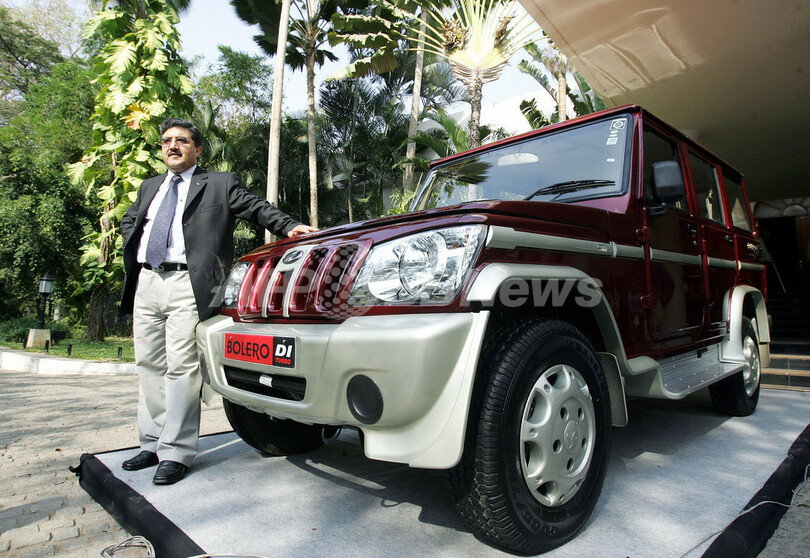 【バンガロール/インド 14日 AFP】インドの自動車メーカー、マヒンドラ・アンド・マヒンドラ(Mahindra and Mahindra)が、国内一の人気を誇るスポーツタイプ多目的車(SUV)の第2世代にあたるボレロ(Bolero)の新型モデルBoleroを発表した。マヒンドラ・アンド・マヒンドラ社によれば、若者世代をターゲットに開発された同車により、SUV分野における同社の優位性がますます堅固なものになることを確信しているという。写真は14日、バンガロール(Bangalore)で公開されたボレロ新型モデルとマヒンドラ・アンド・マヒンドラ自動車部門のBhartendu Kapoor営業部長。(c)AFP/Dibyangshu SARKAR