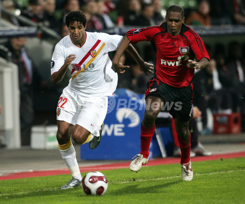 【レバークーゼン/ドイツ 14日 AFP】サッカー、UEFA杯(UEFA Cup)・決勝トーナメント2回戦、レバークーゼン(Leverkusen)vsランス(Lens)、第2戦。レバークーゼンのセルゲイ・バルバレス(Sergej Barbarez)は、後半10分にチーム2点目のゴールを決めて勝利に貢献した。試合はレバークーゼンが3-0でランスに快勝し、2試合合計4-2で準々決勝進出を決めた。写真は、ゴールを決めて喜びを表すバルバレス。(c)AFP/JUERGEN SCHWARZ