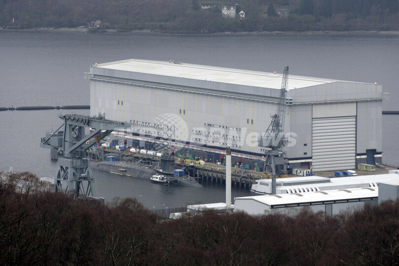 写真は14日、スコットランド(Scotland)のファスレーン(Faslane)海軍基地で、停泊するトライデント・ミサイルを搭載した潜水艦。(c)AFP/MAURICE MCDONALD