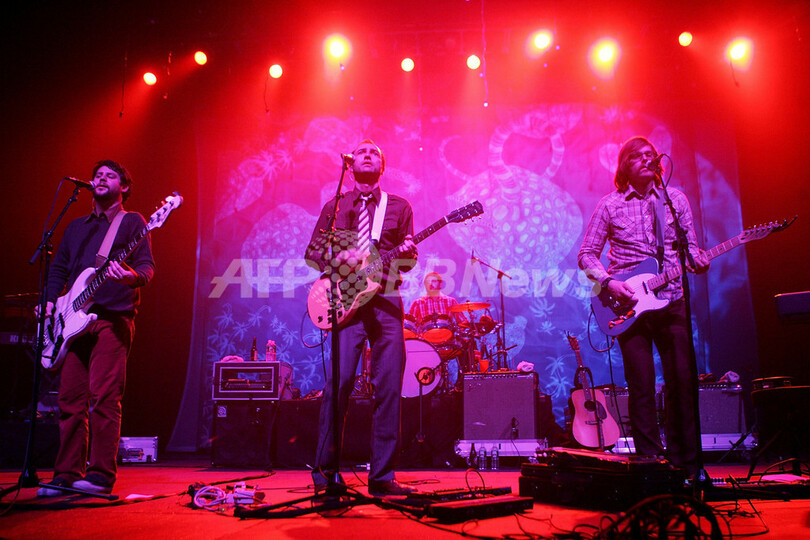 【ニューヨーク/米国 15日 AFP】オレゴンを拠点にするインディー系バンド、シンズ(The Shins)が14日、マジソン・スクエア・ガーデン(Madison Square Garden)内のシアター(The Theater)でコンサートを開催した。シンズはこの後、カナダ、ヨーロッパをツアーし、4月に再び米国に戻ってくる。写真はパフォーマンスを披露するヴォーカル/ギターのジェームズ・マーサー(James Mercer)。(c)AFP/Getty Images Scott Gries