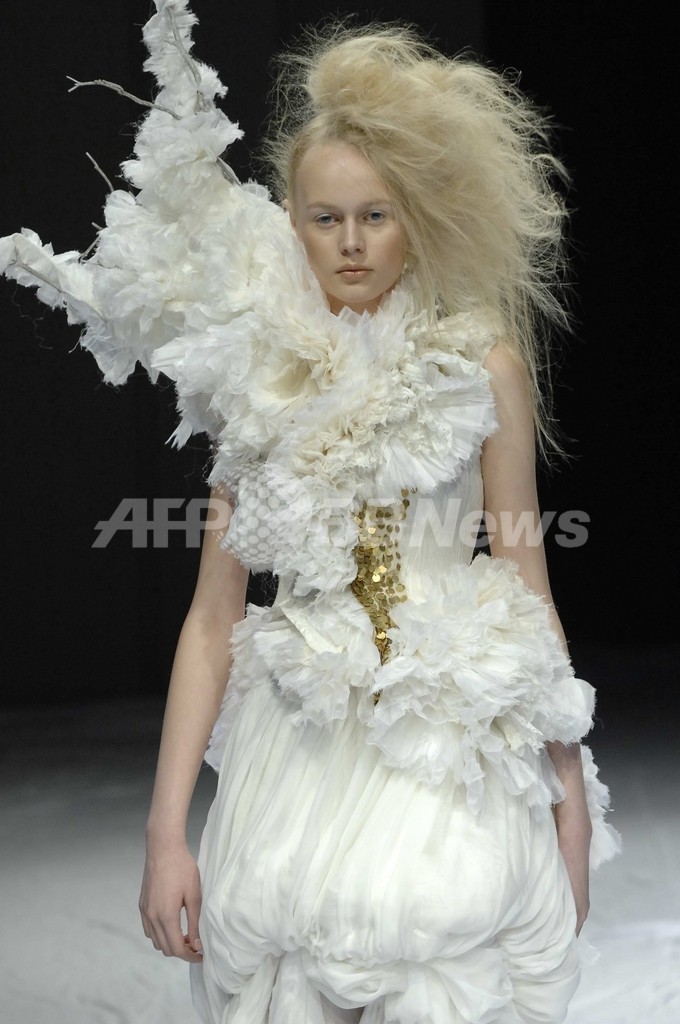 【東京 16日 AFP BB News】12日から第4回「東京発 日本ファッション・ウィーク(JAPAN FASHION WEEK)が開催されている。5日間にわたり、日本橋の特設テントや東京ビル内の会場を舞台に38ブランドが07/08年秋冬コレクションを発表する。15日、スズキ タカユキ(suzuki takayuki)が新作を発表した。写真は、新作を披露するモデル。(c)AFP BB News/HIROKAZU OHARA