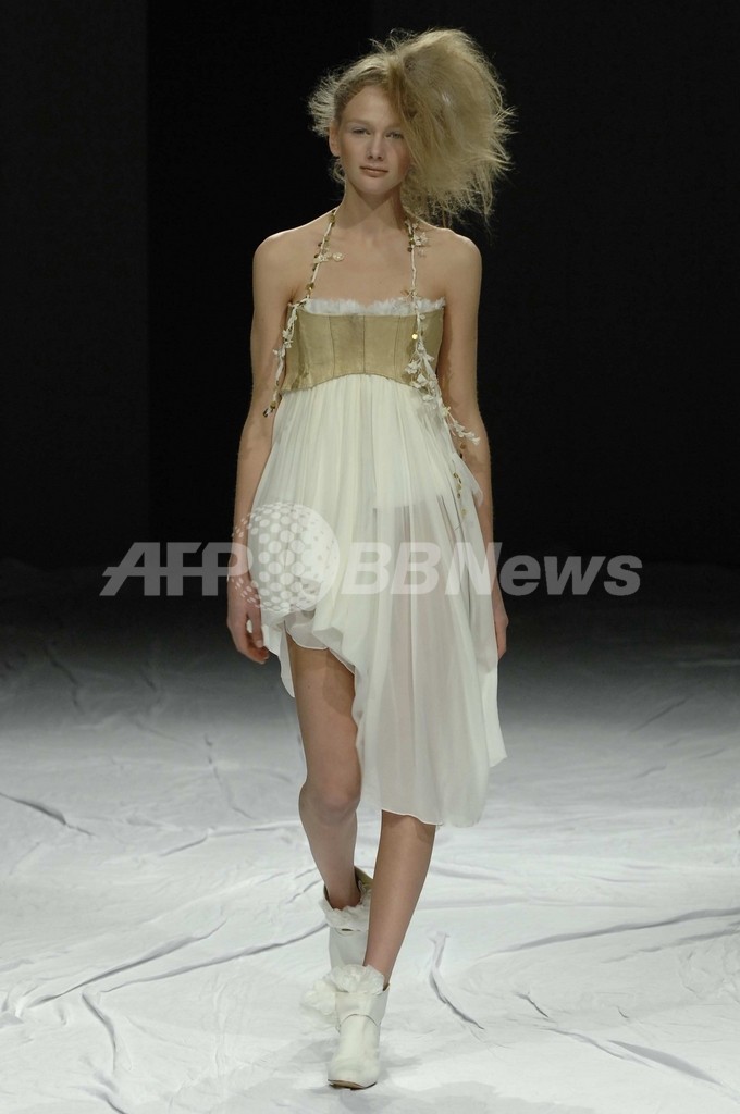 【東京 16日 AFP BB News】12日から第4回「東京発 日本ファッション・ウィーク(JAPAN FASHION WEEK)が開催されている。5日間にわたり、日本橋の特設テントや東京ビル内の会場を舞台に38ブランドが07/08年秋冬コレクションを発表する。15日、スズキ タカユキ(suzuki takayuki)が新作を発表した。写真は、新作を披露するモデル。(c)AFP BB News/HIROKAZU OHARA