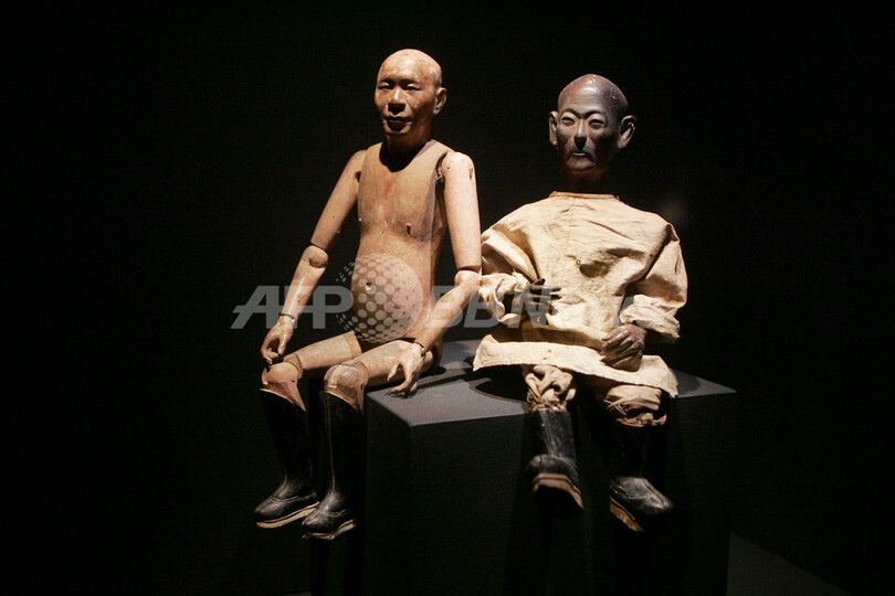 写真は14日に撮影された同展に出展される木製人形。(c)AFP/ FRANCOIS GUILLOT