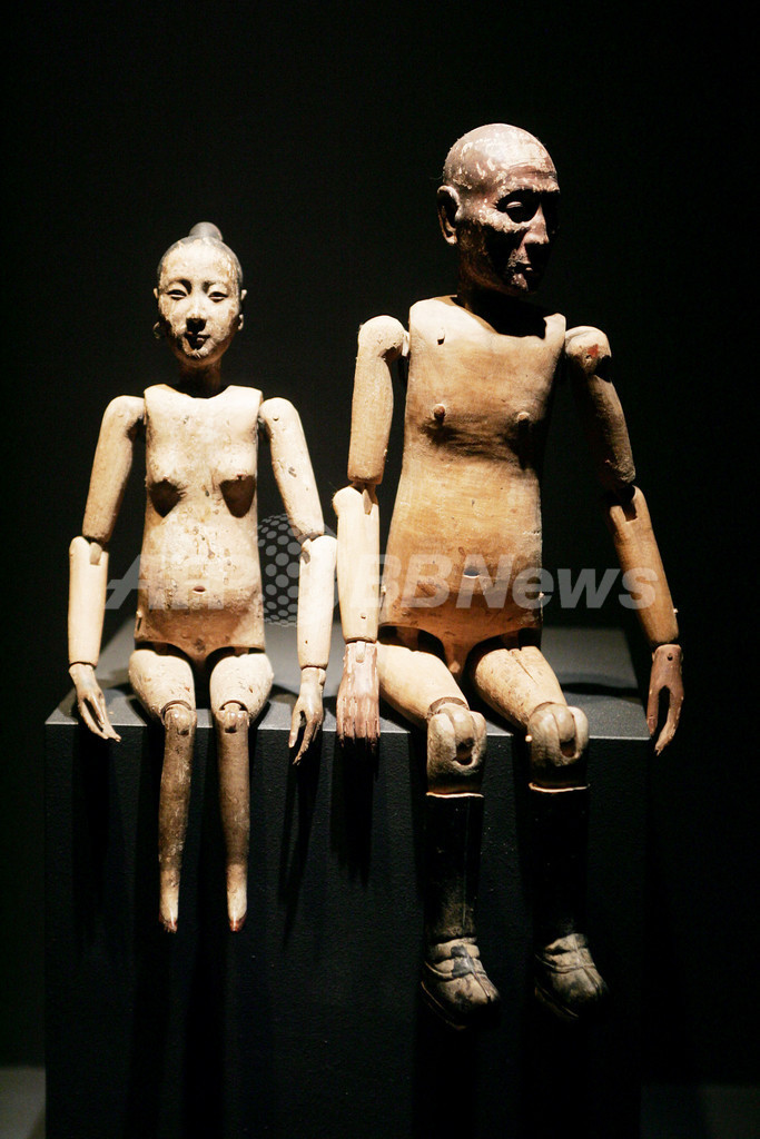 写真は14日に撮影された同展に出展される木製人形。(c)AFP/ FRANCOIS GUILLOT