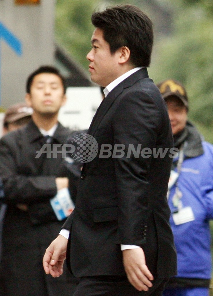 写真は、16日、東京地方裁判所に到着した堀江被告。(c)AFP/KAZUHIRO NOGI