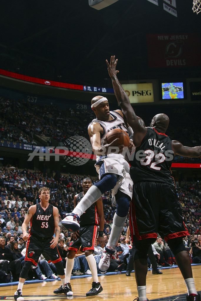 【イーストラザフォード/米国 15日 AFP】06-07NBA、ニュージャージー・ネッツ(New Jersey Nets)vsマイアミ・ヒート(Miami Heat)。ヒートのジェイソン・ウィリアムス(Jason Williams)は、13得点12アシストでダブルダブルを記録しチームの勝利に貢献。試合はヒートが93-86でネッツに勝利し、8連勝を飾った。写真は、ドリブルからレイアップシュートを放つウィリアムス。(c)AFP/Getty Images/NBAE Jesse D. Garrabrant