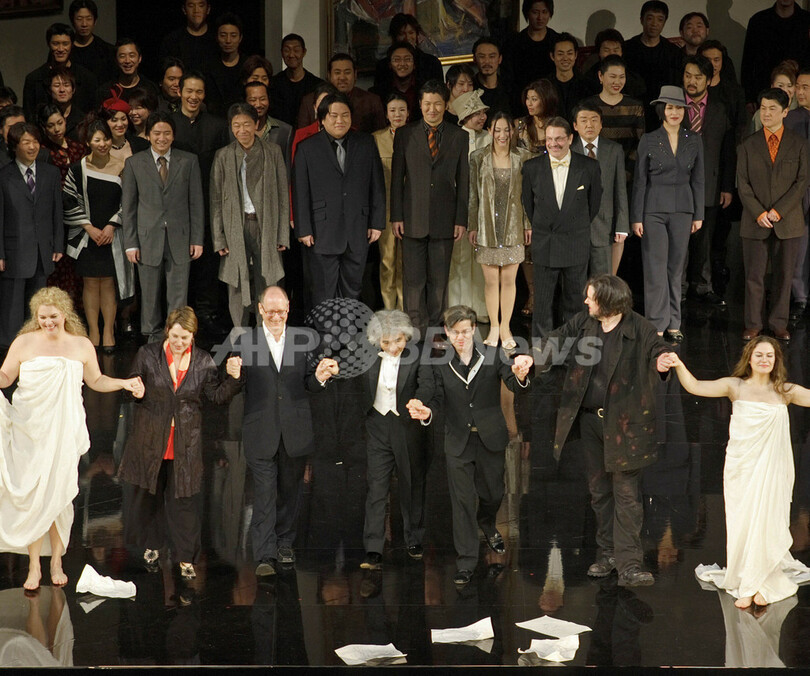 写真は15日、文化会館でオペラ「タンホイザー」プレミア公演のカーテンコールで、観客からの喝采にこたえる小澤征爾(手前中央)。(c)AFP/TOKYO OPERA NOMORI / HO