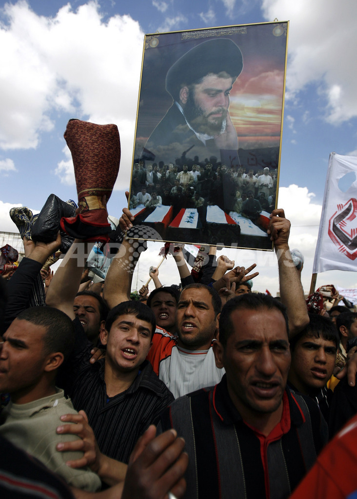 イスラム教シーア派(Shiite)指導者、ムクタダ・サドル(Moqtada al-Sadr)師が強い影響力を持つ同地区では、住民らが、「米国にノー。イスラエルにノー。悪魔にノー」と口々に叫び、彼らの声は街中に響き渡った。