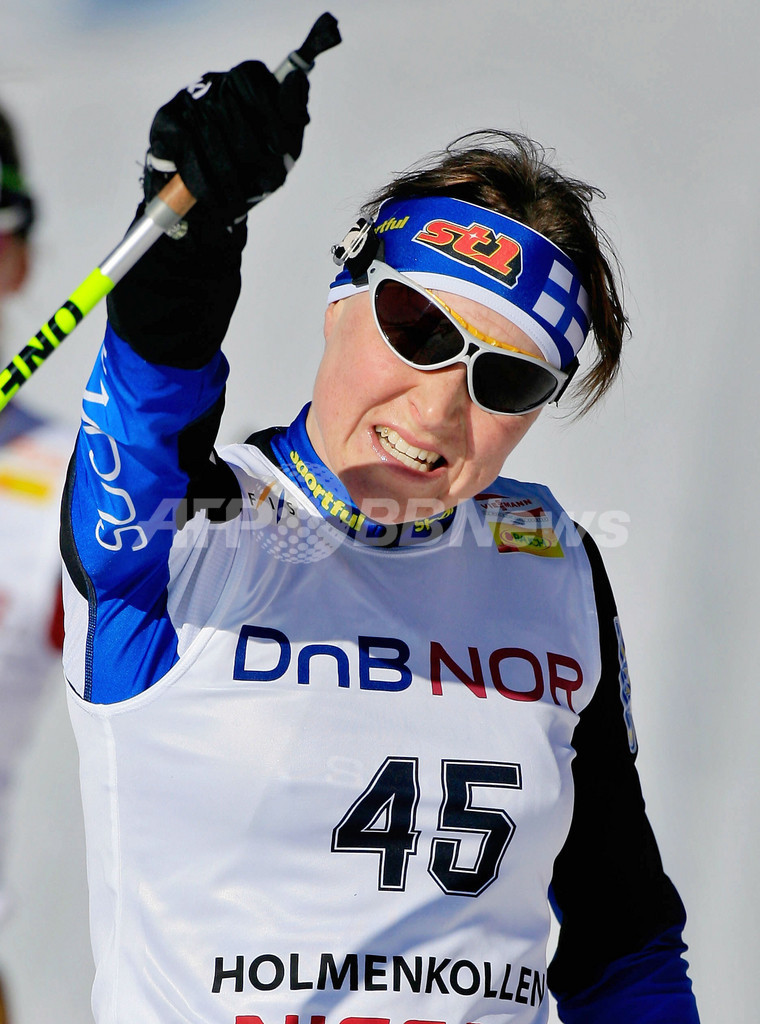 【ドランメン/ノルウェー 17日 AFP】クロスカントリーW杯(FIS WORLD CUP CROSS-COUNTRY 2006/07)・第17戦、女子個人30キロメートル・クラシカル。フィンランドのアイノカイサ・サリネン(Aino Kaisa Saarinen)は、1時間23分55秒7をマークして2位と30秒6差の首位でフィニッシュ、今シーズン初勝利を挙げた。(c)AFP/SANNUM LAUTEN