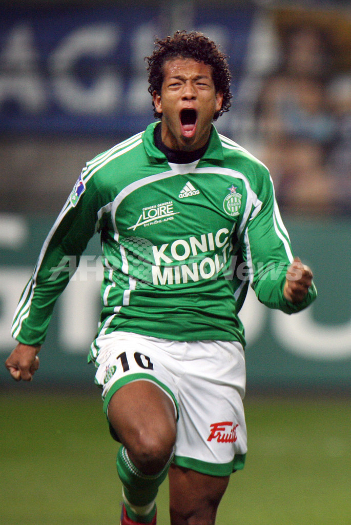 【サンテティエンヌ/フランス 17日 AFP】サッカー、フランス・リーグ1・第29節、サンテティエンヌ(AS Saint-Etienne)vsトロワ(Troyes)。サンテティエンヌのフレディ・グアリン(Freddy Guarin)は、後半2分にチーム3点目のゴールを決めて今シーズン初ゴールをマークする。試合はサンテティエンヌが3-1で勝利を収め、連敗を2で止めて7位の座をキープした。(c)AFP/PHILIPPE MERLE