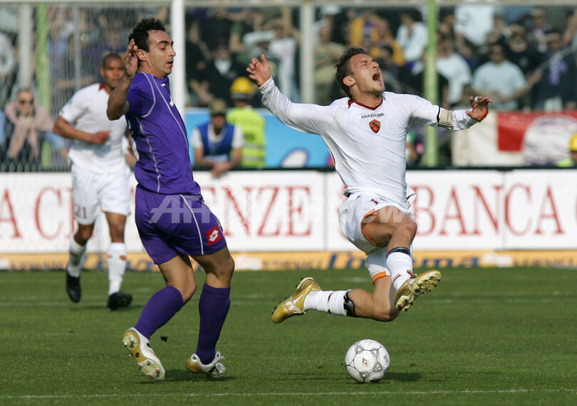 【フローレンス/イタリア 18日 AFP】サッカー、イタリア・セリエA・第29節、フィオレンティーナ(Fiorentina)vsASローマ(AS Roma)。試合は両チーム共に得点を挙げることが出来ずに0-0のスコアレスドローに終わった。写真は、試合中に厳しい表情を見せるローマの主将フランチェスコ・トッティ(Francesco Totti)。(c)AFP/CARLO BARONCINI