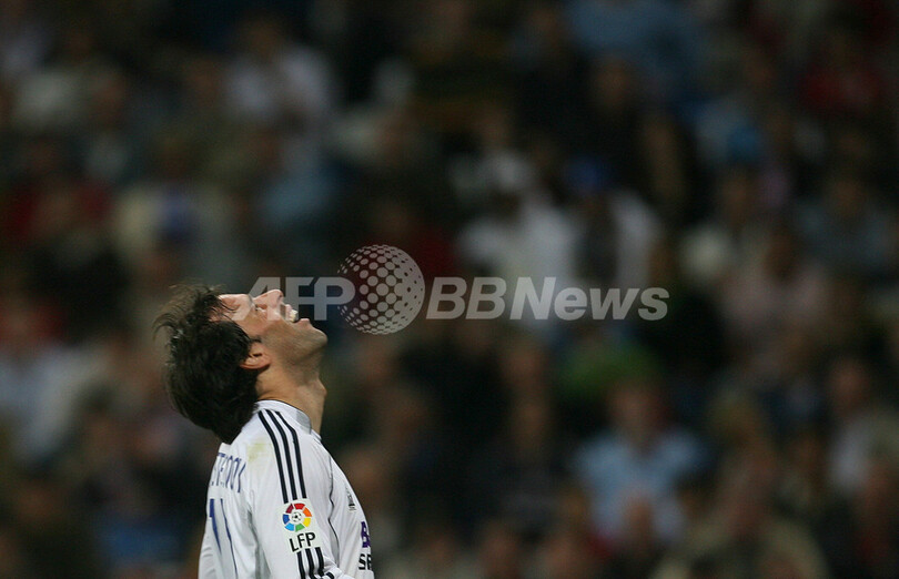 【マドリード/スペイン 18日 AFP】サッカー、スペイン・リーガエスパニョーラ1部・第27節、レアル・マドリード(Real Madrid)vsヒムナスティク(Gimnastic)。試合は後半11分にロビーニョ(Robinho)のゴールで先制したレアル・マドリードが2-0で勝利を収め、第22節以来約1ヶ月ぶりに白星を飾り3位に順位を上げた。写真は、ミゲル・トーレス(Miguel Torres)に抱えられながらサポーターに得点をアピールするロビーニョ(上)。(c)AFP/PIERRE-PHILIPPE MARCOU
