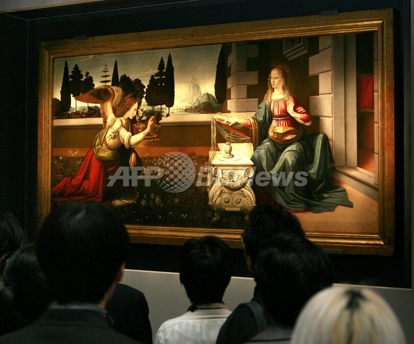 【東京 19日 AFP】AFP】東京国立博物館で20日から開催される特別展「レオナルド・ダ・ヴィンチ - 天才の実像」に展示される絵画「受胎告知(The Annunciation)」の内覧が行われた。ルネッサンス期に制作され、1945年以降はフィレンツェを出たことがなかった同絵画は今月16日に慎重な輸送のもと日本に到着した。