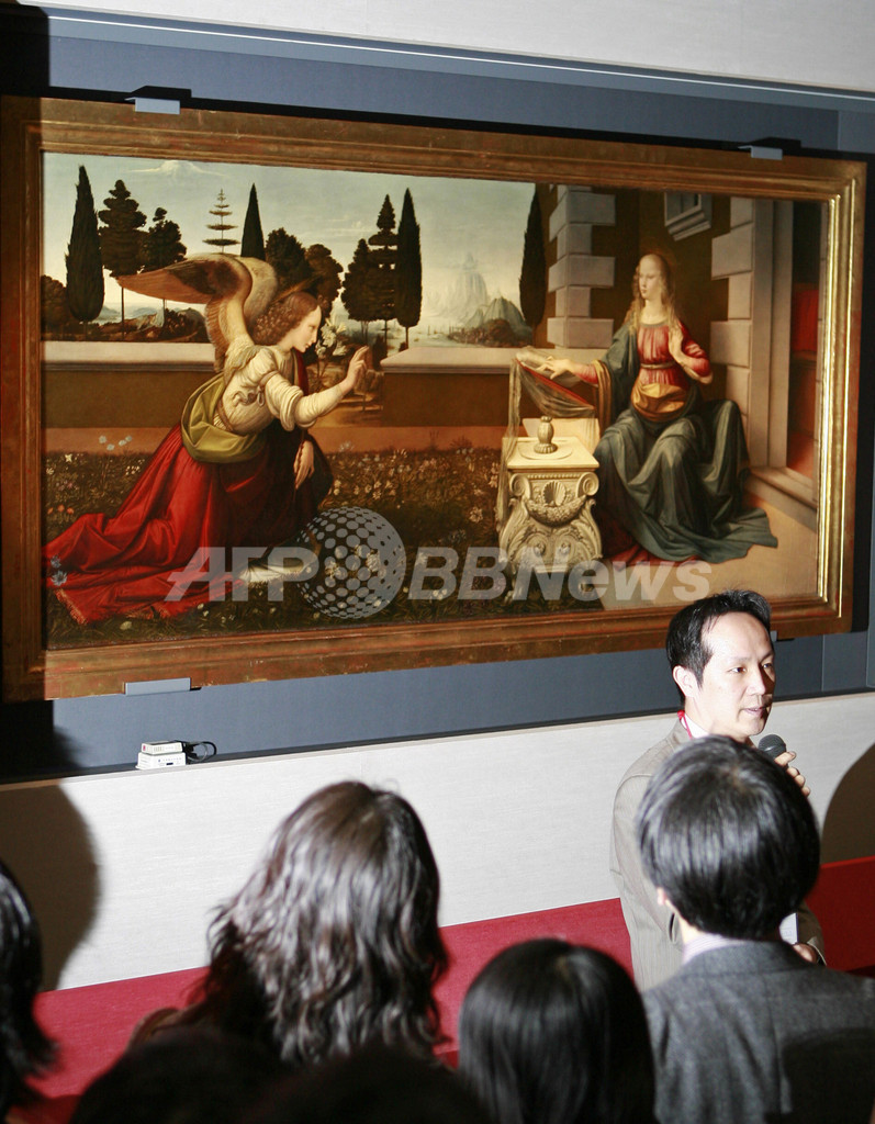 【東京 19日 AFP】AFP】東京国立博物館で20日から開催される特別展「レオナルド・ダ・ヴィンチ - 天才の実像」に展示される絵画「受胎告知(The Annunciation)」の内覧が行われた。ルネッサンス期に制作され、1945年以降はフィレンツェを出たことがなかった同絵画は今月16日に慎重な輸送のもと日本に到着した。