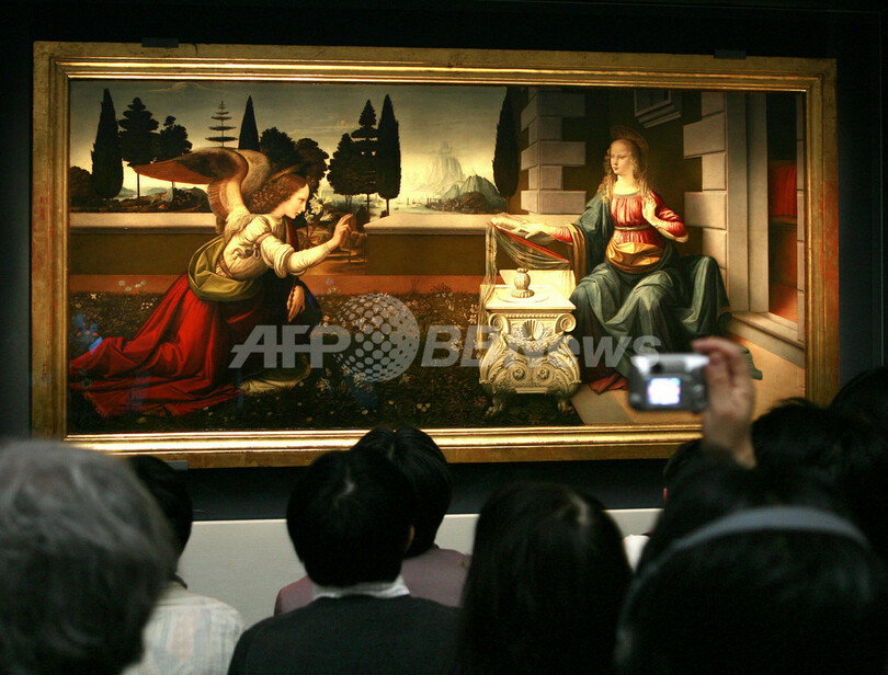 【東京 19日 AFP】AFP】東京国立博物館で20日から開催される特別展「レオナルド・ダ・ヴィンチ - 天才の実像」に展示される絵画「受胎告知(The Annunciation)」の内覧が行われた。ルネッサンス期に制作され、1945年以降はフィレンツェを出たことがなかった同絵画は今月16日に慎重な輸送のもと日本に到着した。