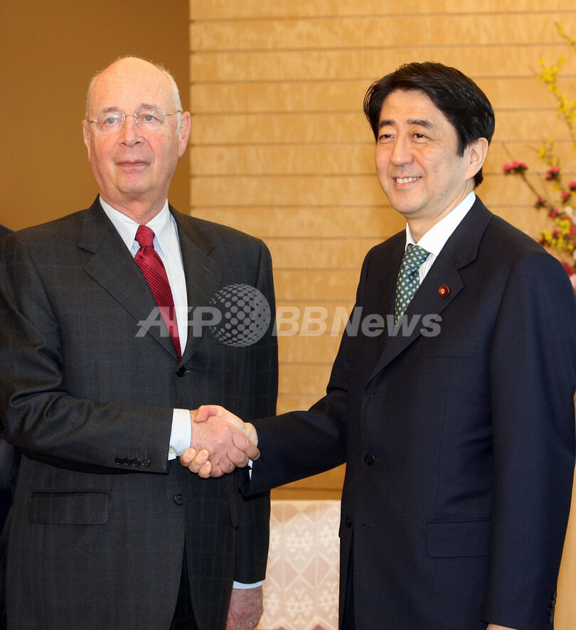 ニュース 政治・経済 世界経済フォーラム会長、安倍首相と対談 - 東京 2007年3月20日 12:19 発信地:東京 [ アジア・オセアニア 東京 ] このニュースをシェア ‹ › ❮ 2/2 ❯ 写真は会談中、握手を交わすシュワブ会長(左)と安倍首相。(c)AFP 画像作成中 ! 【東京 20日 AFP】来日中の世界経済フォーラム(WEF)の創設者、クラウス・シュワブ(Klaus Schwab)会長と安倍晋三首相が20日、首相官邸で会談した。写真は会談するシュワブ会長(左)と安倍首相。(c)AFP 政治・経済 一覧へ> メディア・報道関係・法人の方向け 写真・動画 購入のお問合せ>