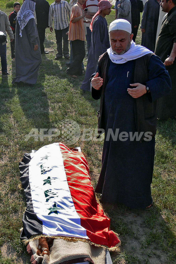 【バグダッド/イラク 21日 AFP】】「人道に対する罪」で20日に死刑が執行された故サダム・フセイン(Saddam Hussein)元大統領の側近、タハ・ヤシン・ラマダン(Taha Yassin Ramadan)元副大統領の埋葬が同日、執り行われた。遺体は、故フセイン元大統領と同じく北部ティクリート(Tikrit)近郊の村アウジャ(Awja)に埋葬された。写真は、埋葬を前に祈る男性。(c)AFP/DIA HAMID