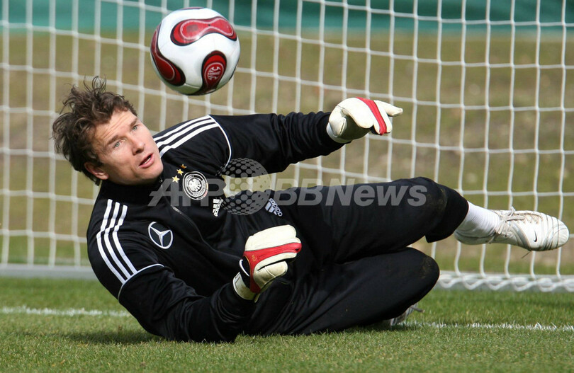 写真は、コメルツバンクアリーナ・スタジアム(Commerzbank Arena Stadium)でキーパー練習に励むレーマン。(c)AFP/DDP/THOMAS LOHNES