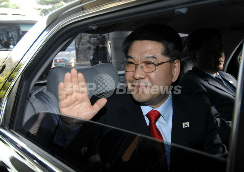 写真は2月に開催された南北閣僚級会談へ向け出発する李統一相(2月27日撮影)。(c)AFP/JUNG YEON-JE